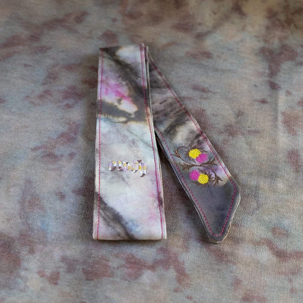 ~ Handwoven and Shadow-Kissed ~ Forged with meticulous intent, each headband emerges from the loom, a canvas painted with hues drawn from the dark realm. The art of hand-dyeing bestows upon it a spectral array, ensuring no two bear the same enchanting hues.
